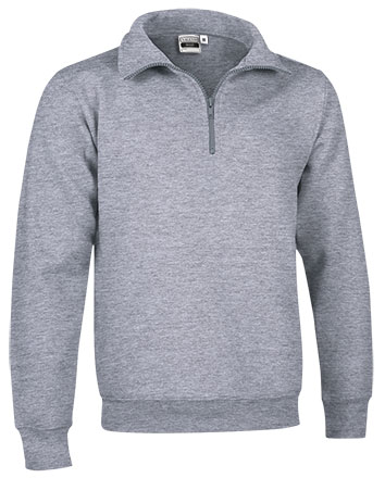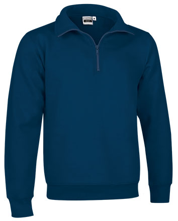 65% poliéster, 35% algodão. Felpa cardada dentro 295 grs/m2. Gola alta com fecho até ao peito. Punhos e baixo canelado.