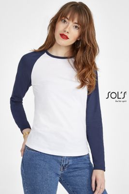 T-Shirt Bicolor Com Mangas Compridas Raglã Para Senhora MILKY LSL WOMEN