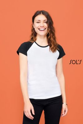 T-Shirt Bicolor Com Mangas Raglã Para Senhora MILKY