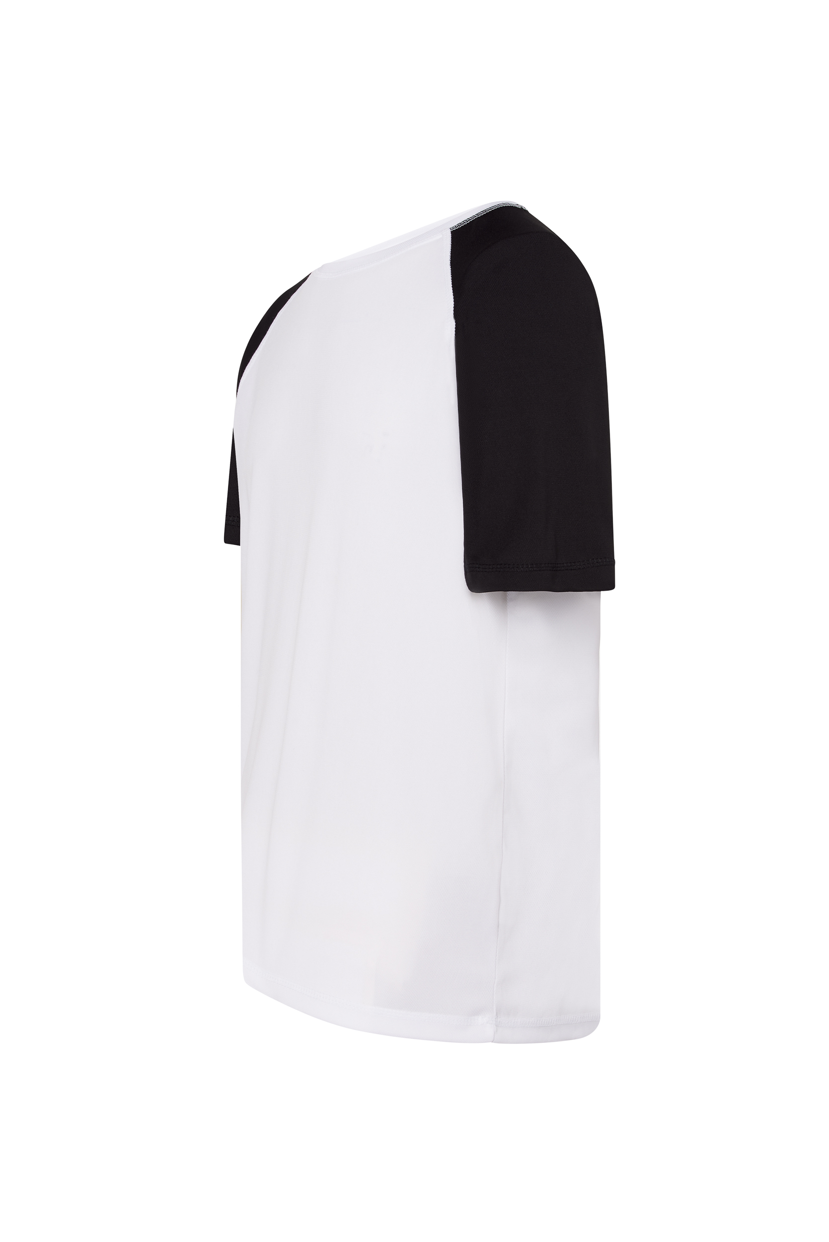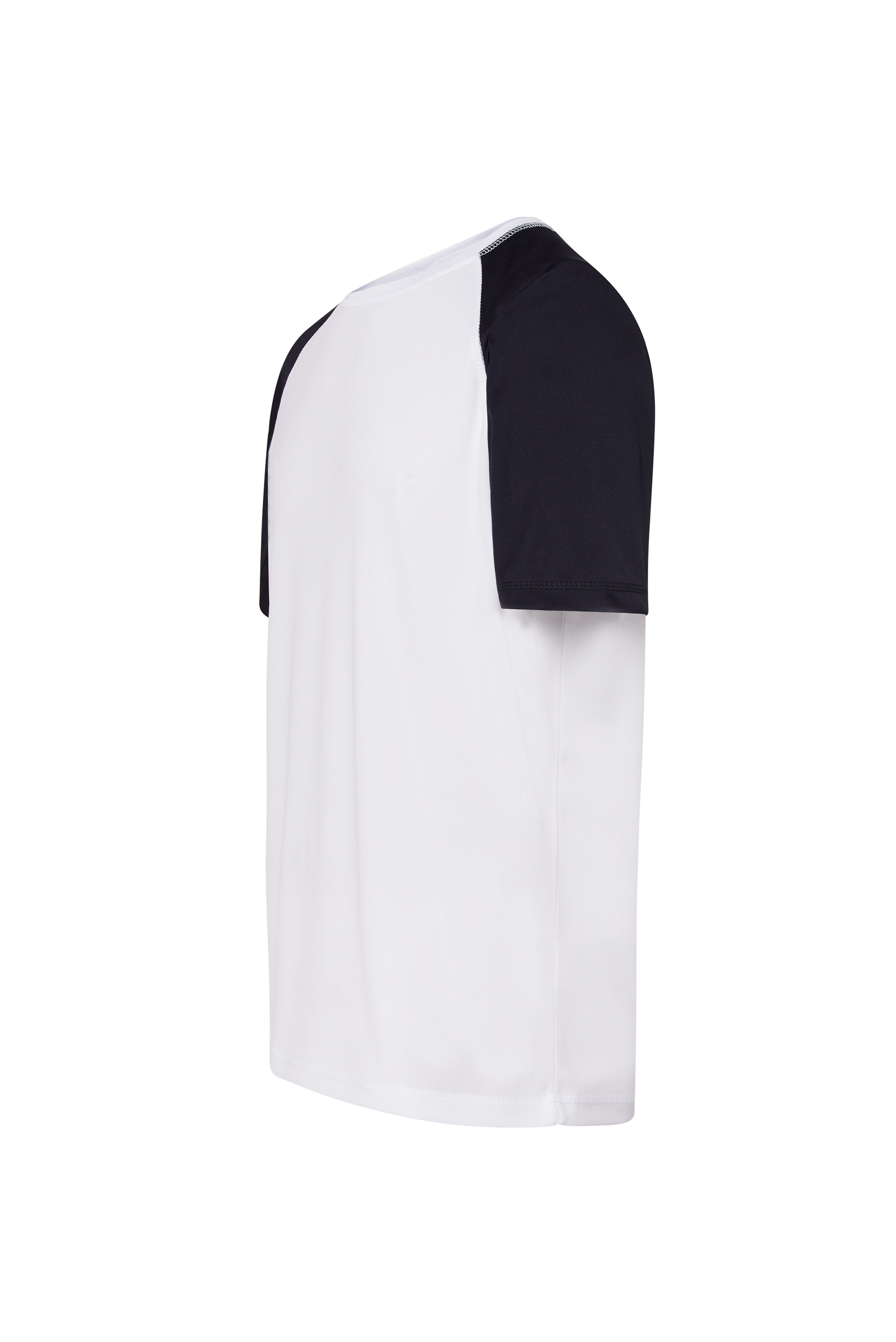 Camisa esportiva masculina com mangas ranglan curtas em contraste e com costura decorativa meia manga. Etiqueta removível. Disponível em 4 cores e do tamanho S ao 3XL.
