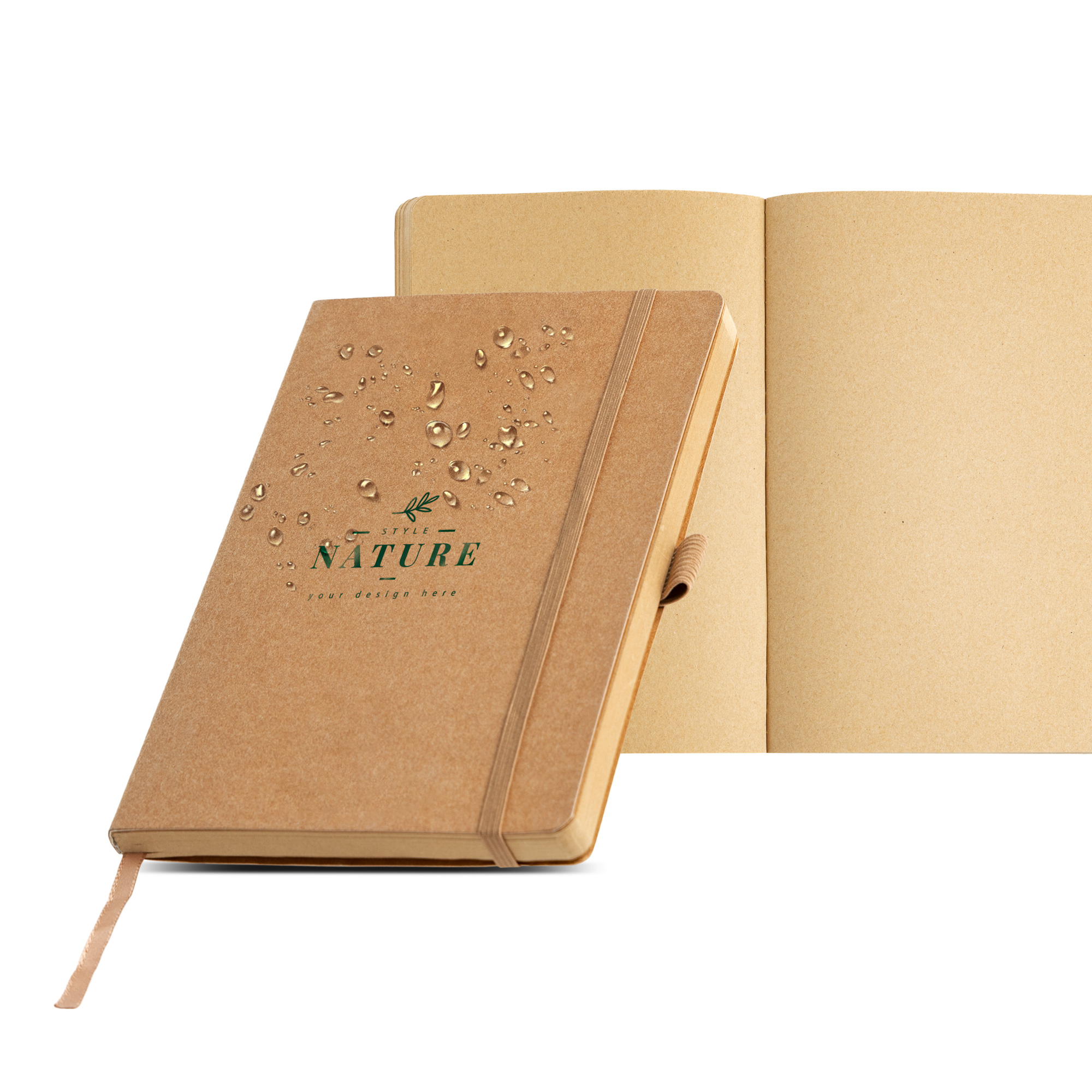 Bloco A5 com capa em papel resistente à água e folhas kraft.